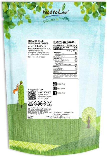 Food to Live Organic Blue Spirulina Powder, 16 Oz