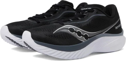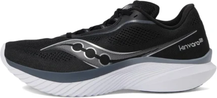The Saucony Women’s Kinvara 15 in Black/White (Size 9) is a sleek, lightweight running shoe designed for everyday training. With its responsive cushioning