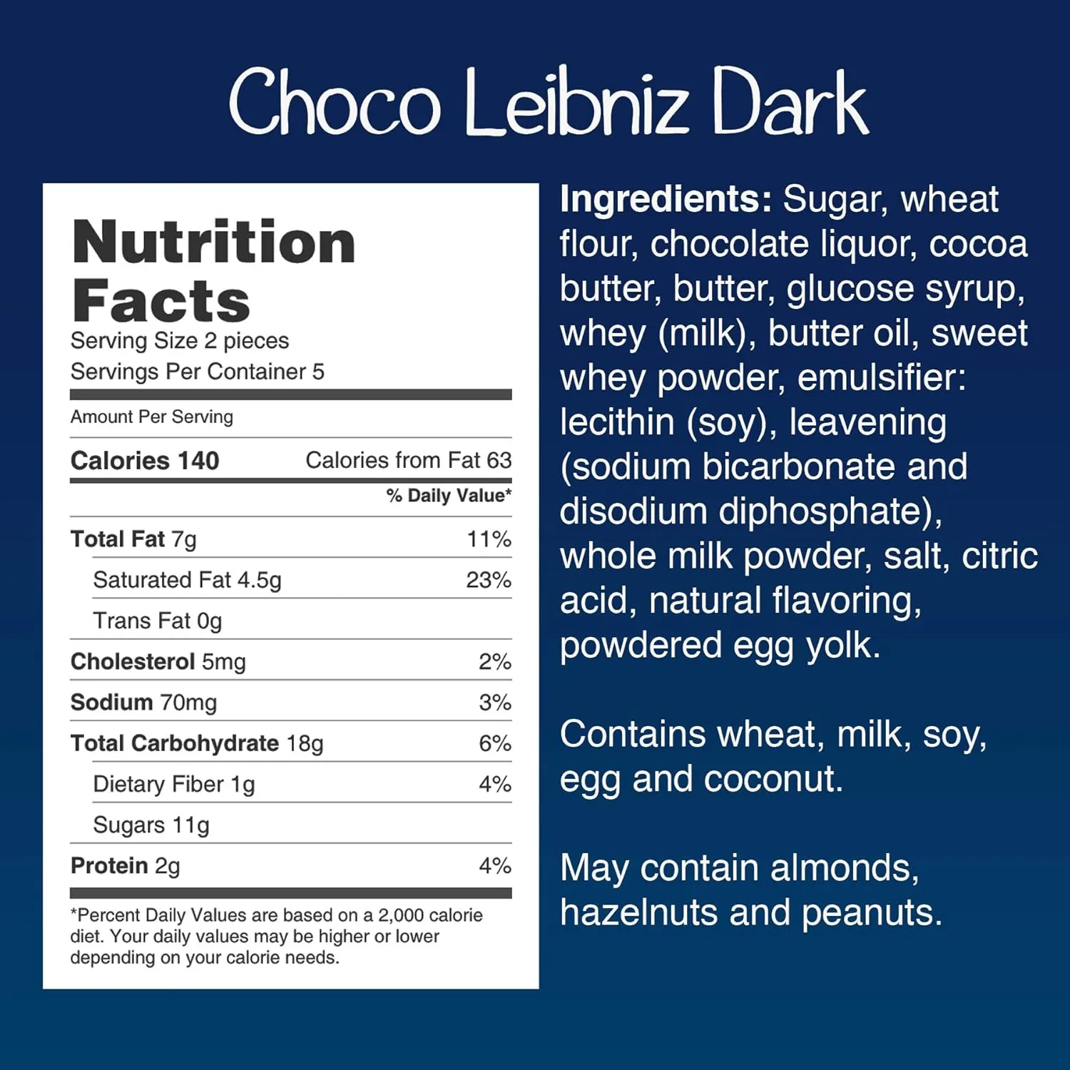 Bahlsen Choco Leibniz Crispy Cookies, 4.4 Oz feature a buttery biscuit base covered with a thick layer of smooth European chocolate. A perfect balance of crunch and rich chocolate flavor for an elegant snack or dessert.
