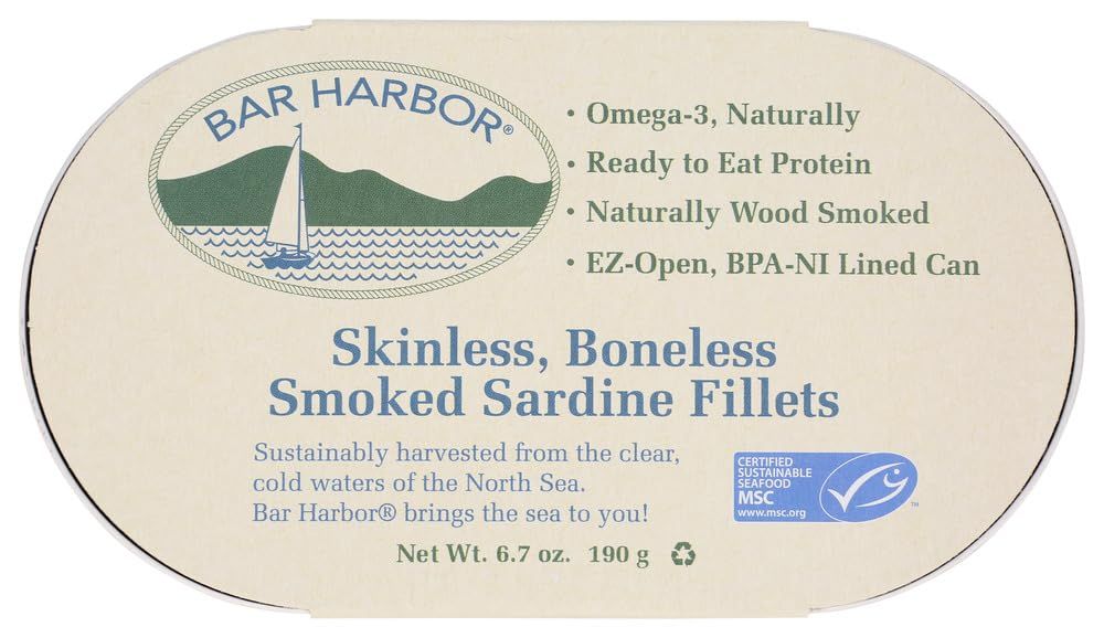 The Bar Harbor Skinless Boneless Smoked Sardine Fillets are a premium seafood option, offering a rich, smoky flavor and convenient preparation. Sustainably harvested from the cold waters of the North Atlantic, these sardines are naturally wood-smoked and packed without skin or bones, making them ready to eat straight from the can.