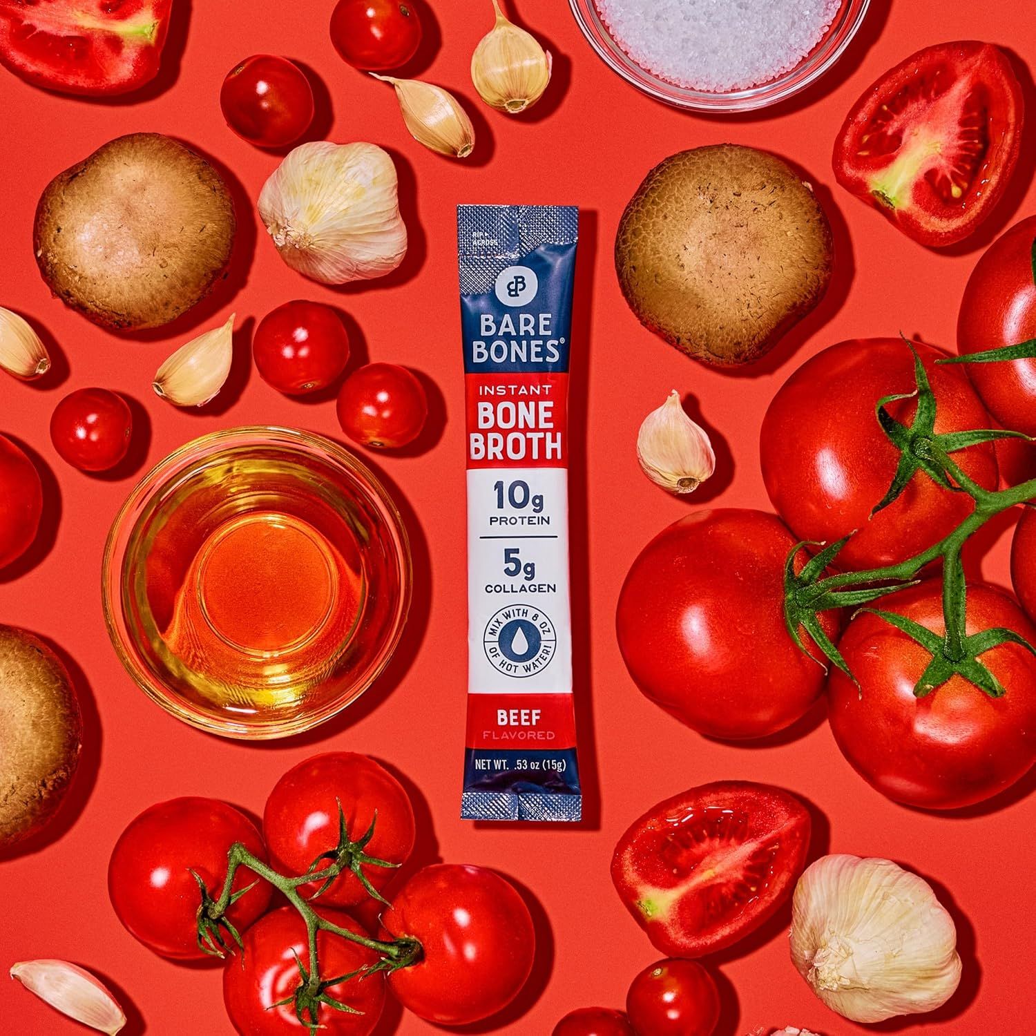 Get a nourishing and flavorful boost on the go with Bare Bones Beef Bone Broth Beverage Mix. This convenient 2.12 oz packet contains a rich, savory beef bone broth powder that’s perfect for a quick and comforting sip. Made from the highest quality ingredients, this mix provides a satisfying umami flavor without the time and effort of making homemade broth. Just add hot water for a delicious and nutrient-dense beverage that’s packed with protein and collagen. It’s the ideal way to get the benefits of bone broth anytime, anywhere.