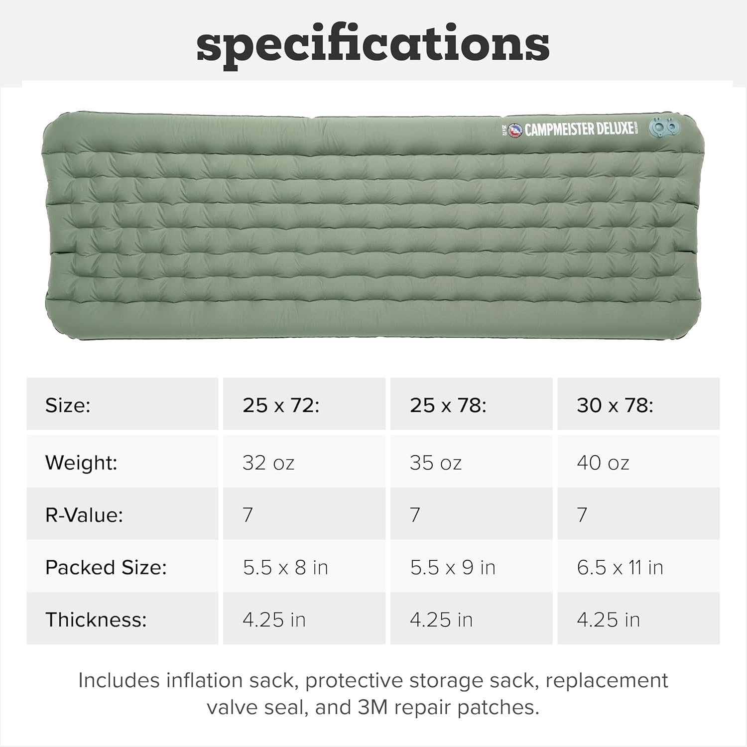Big Agnes Campmeister Deluxe Insulated Sleeping Pad 25×75 Wide Regular, Deep Lichen Green