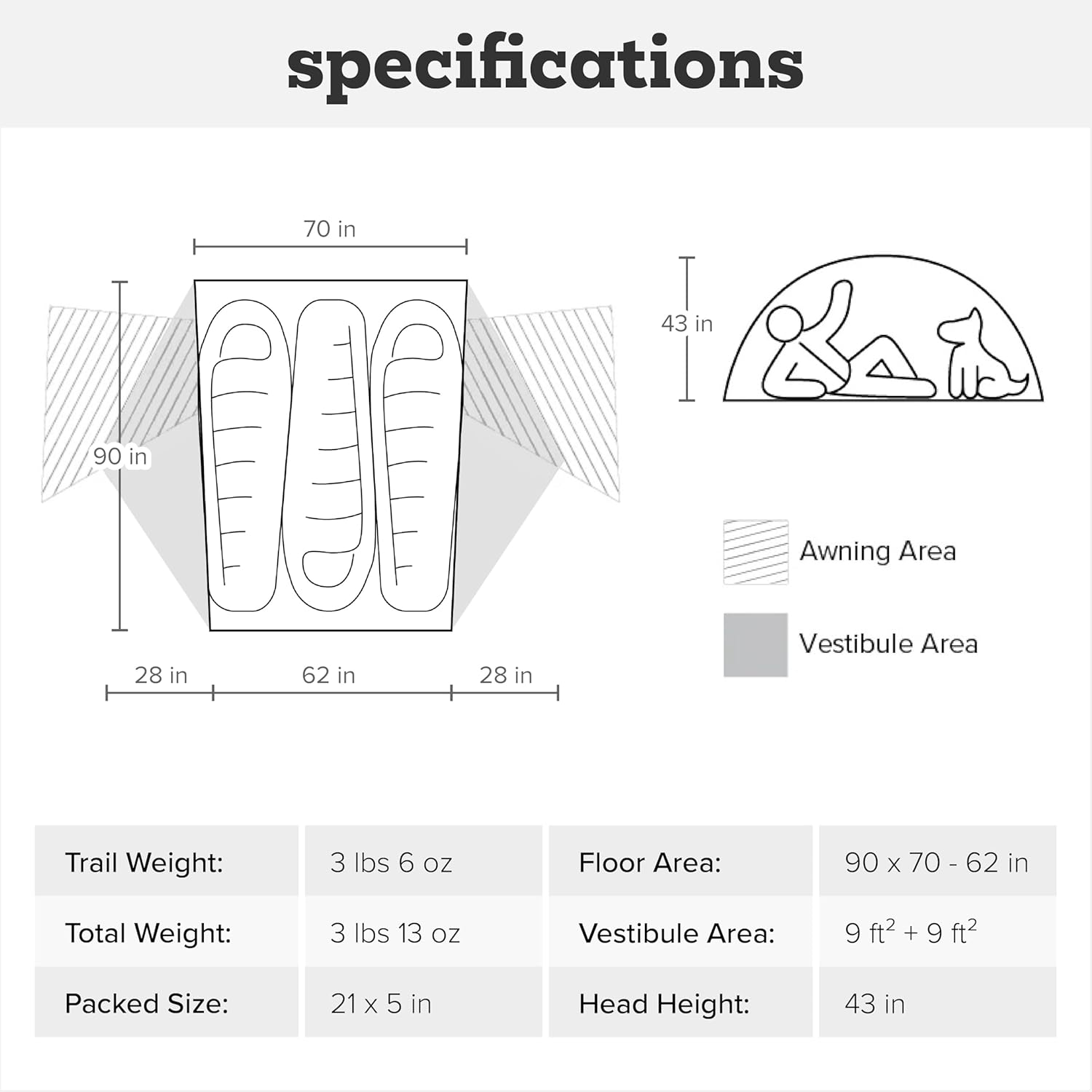 - Spacious Interior – Comfortable room for up to three campers.