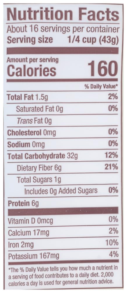 - Excellent source of fiber; 6g protein per serving
