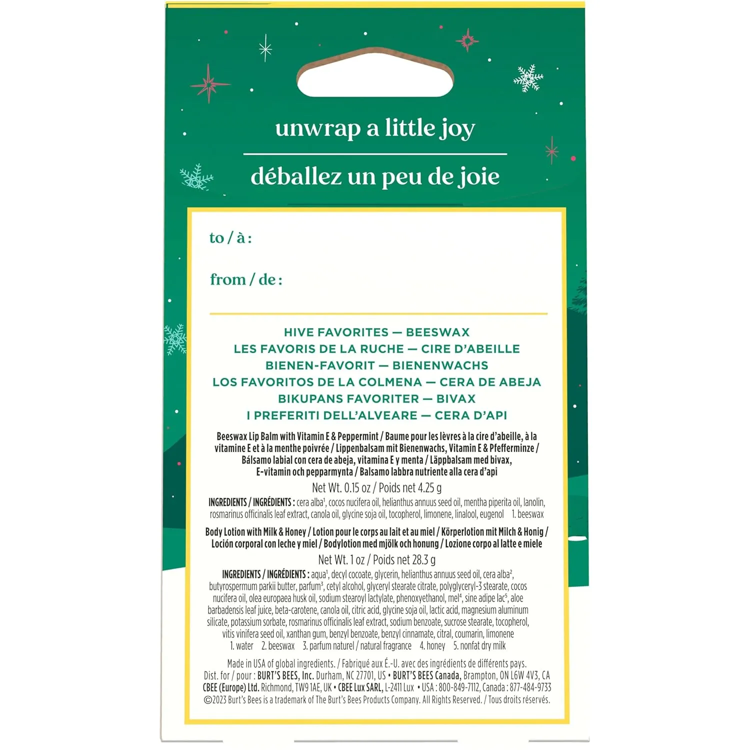 • Includes classic Beeswax Lip Balm and Hand Lotion.