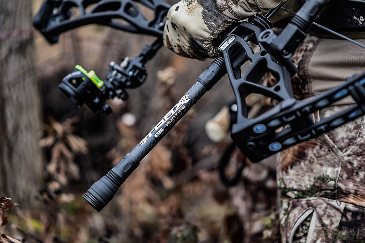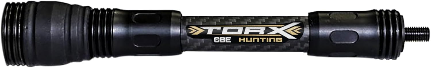 The CBE Torx Stabilizer (often found as the Torx Hunting or Torx Spyder model) is a black, high-modulus carbon archery accessory designed to improve bow stability, reduce vibration, and enhance shot accuracy. It is available in various lengths to suit both hunting and target shooting styles.