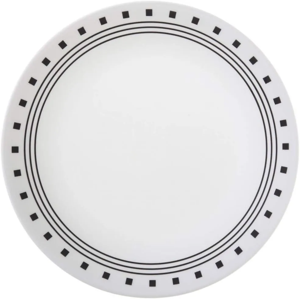Corelle Livingware Black/White Glass City Block Luncheon Plate