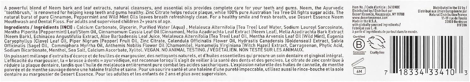 Desert Essence Neem Toothpaste, Cinnamint, 6.25 Oz