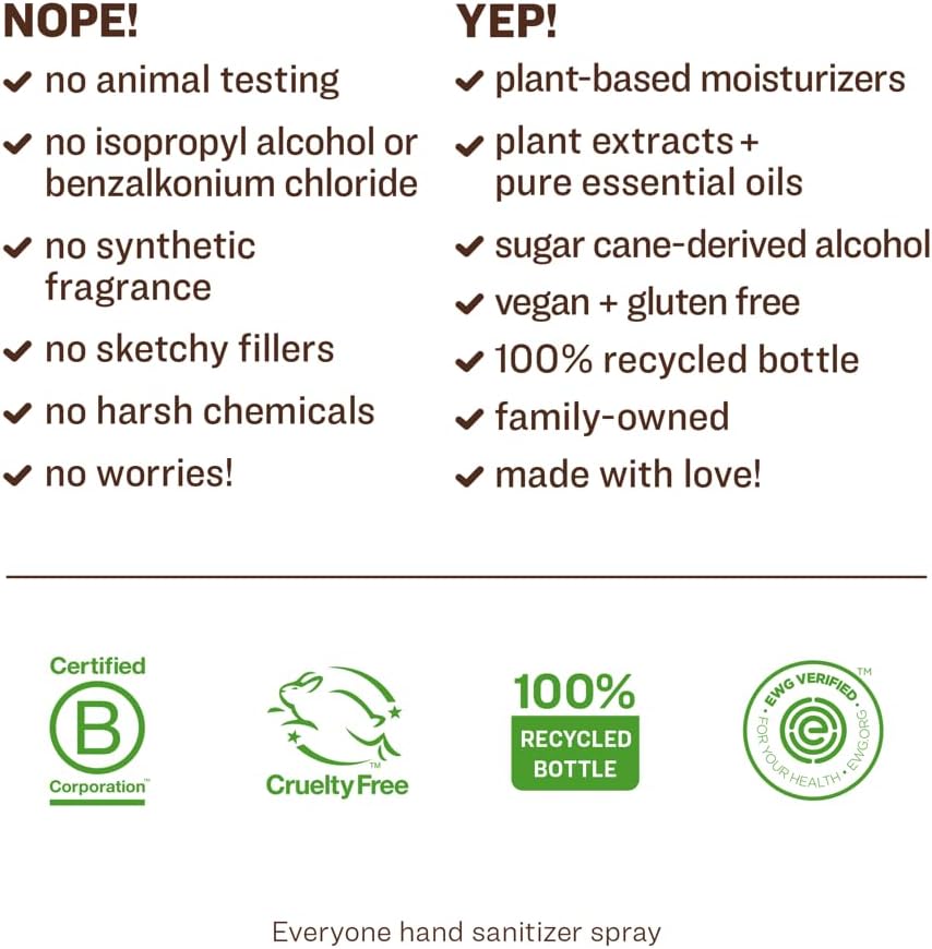 Everyone Hand Sanitizer Spray, Coconut + Lemon (2 fl oz) keeps hands clean and refreshed with a tropical blend of coconut and zesty lemon. Made with plant-based ingredients and 62% alcohol, it effectively eliminates germs while leaving skin soft and lightly scented.