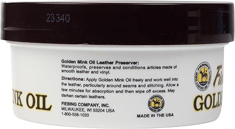 Fiebing’s Golden Mink Oil is a premium solution for keeping your leather and vinyl goods in top condition. This 6 oz formula softens, preserves, and waterproofs leather, protecting it from moisture and salt stains. Perfect for boots, shoes, and other leather items, it extends their life while maintaining a supple texture. Effortless to apply, it’s a must-have for leather care.