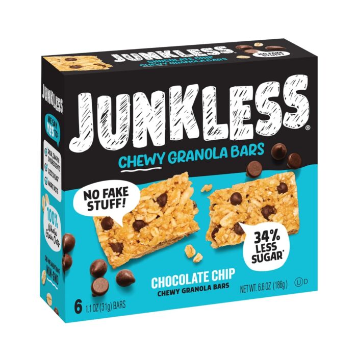 Fuel your day with wholesome, delicious snacks with Junkless Chocolate Chip Chewy Granola Bars, 6.6 oz. Made with simple, high-quality ingredients, these chewy bars combine oats and chocolate chips for a satisfying sweet treat without the unnecessary additives. Perfect for on-the-go snacking, lunchboxes, or a quick energy boost, they deliver great taste and wholesome nutrition in every bite.