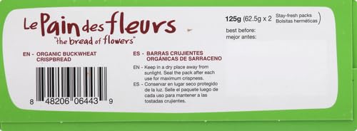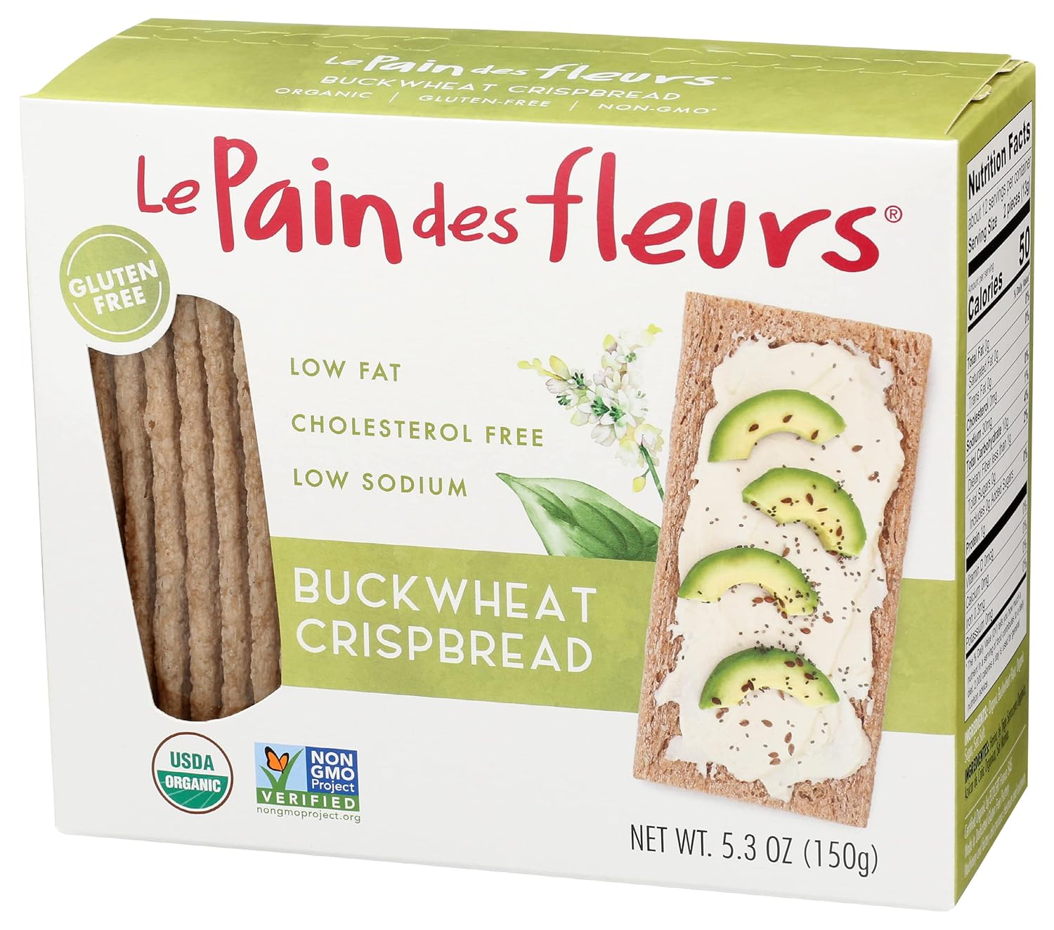 Enjoy light, crunchy goodness with Le Pain des Fleurs Buckwheat Crispbread, 5.3 oz. Made with simple, high-quality ingredients, this thin and crispy flatbread delivers a naturally nutty buckwheat flavor. Perfect as a gluten-free alternative to bread, it pairs beautifully with sweet or savory toppings for snacks, appetizers, or meals.