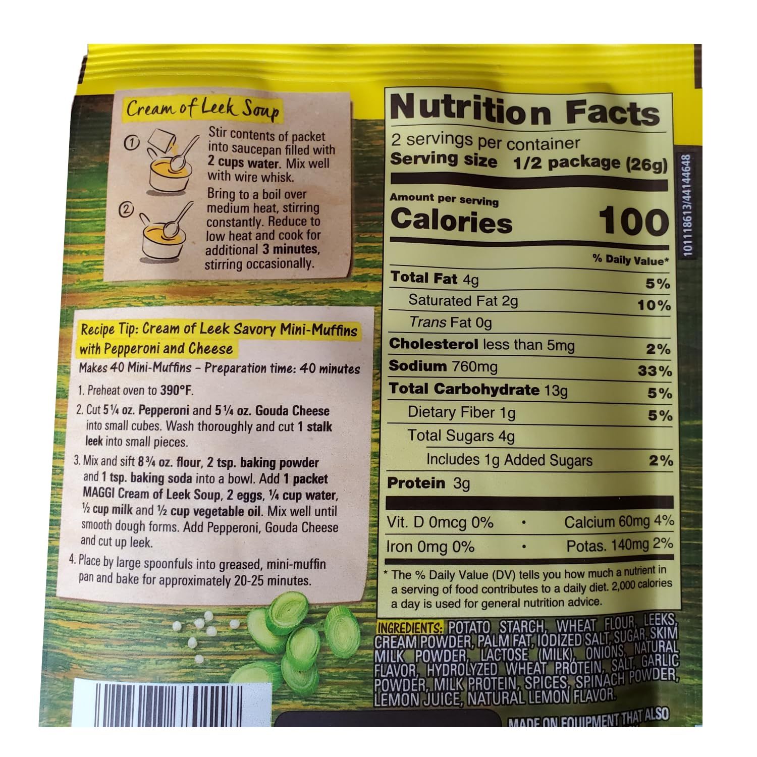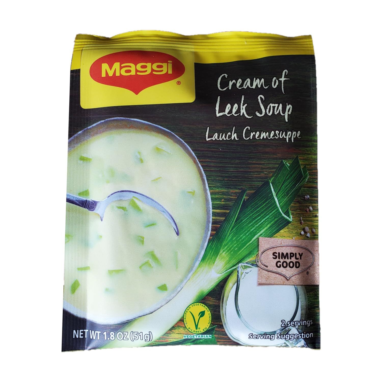 Maggi Cream of Leek Soup (1.8 Oz) is a rich and flavorful soup mix that’s simple to prepare—just add water and heat for a comforting, delicious meal. Made in Germany, it’s a perfect option for a quick, tasty treat.