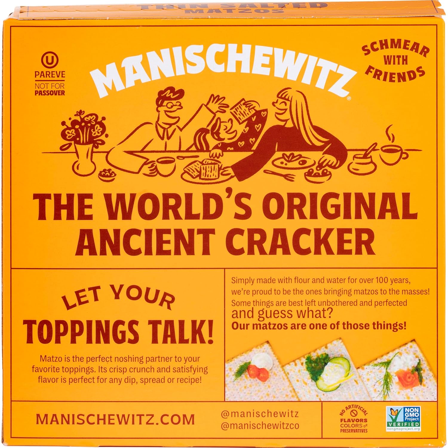 Manischewitz Matzo Thin Salted (10 Oz) offers the classic, crisp taste of traditional matzo with a touch of salt. Perfect for Passover, holiday meals, or everyday snacking, these thin, crunchy unleavened crackers are made with quality ingredients for authentic flavor and texture. Ideal for dipping, spreading, or enjoying on their own, Manischewitz Matzo Thin Salted brings tradition and taste to your table.