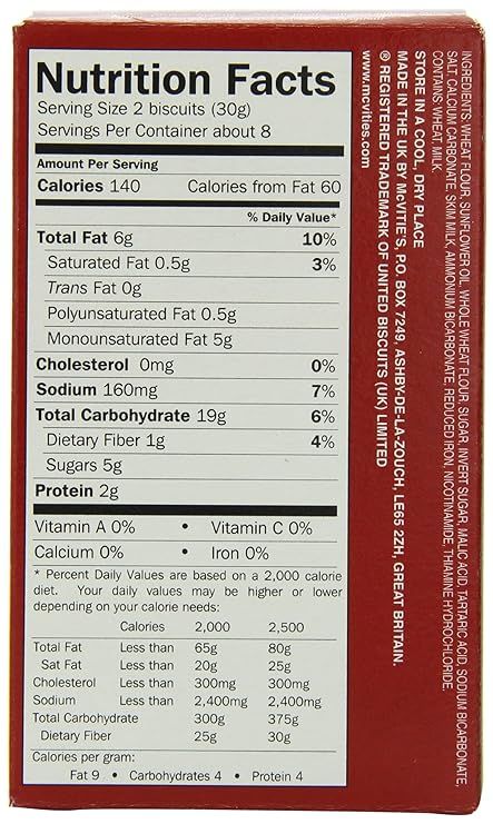 McVitie’s Digestive Wheat Biscuits, 8.8 Oz, are classic British biscuits made with wholesome whole wheat for a lightly sweet, crunchy, and satisfying taste. Perfect with tea, coffee, or as a base for desserts, these iconic biscuits offer a delicious balance of flavor and texture in every bite.
