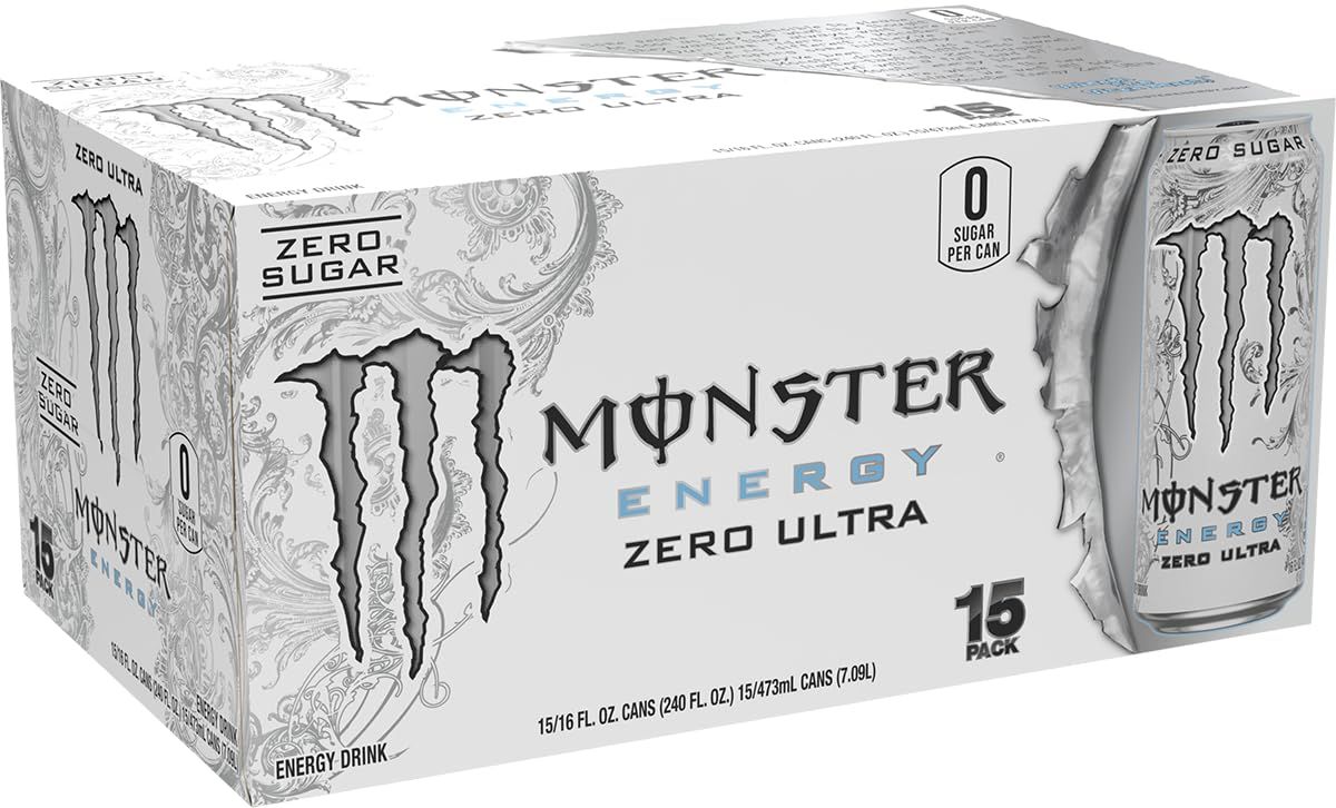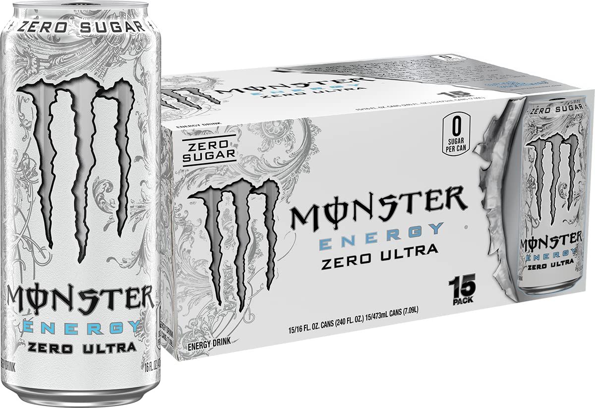 Monster Energy Zero Ultra, Sugar Free Energy Drink, 16 Ounce (Pack of 15)