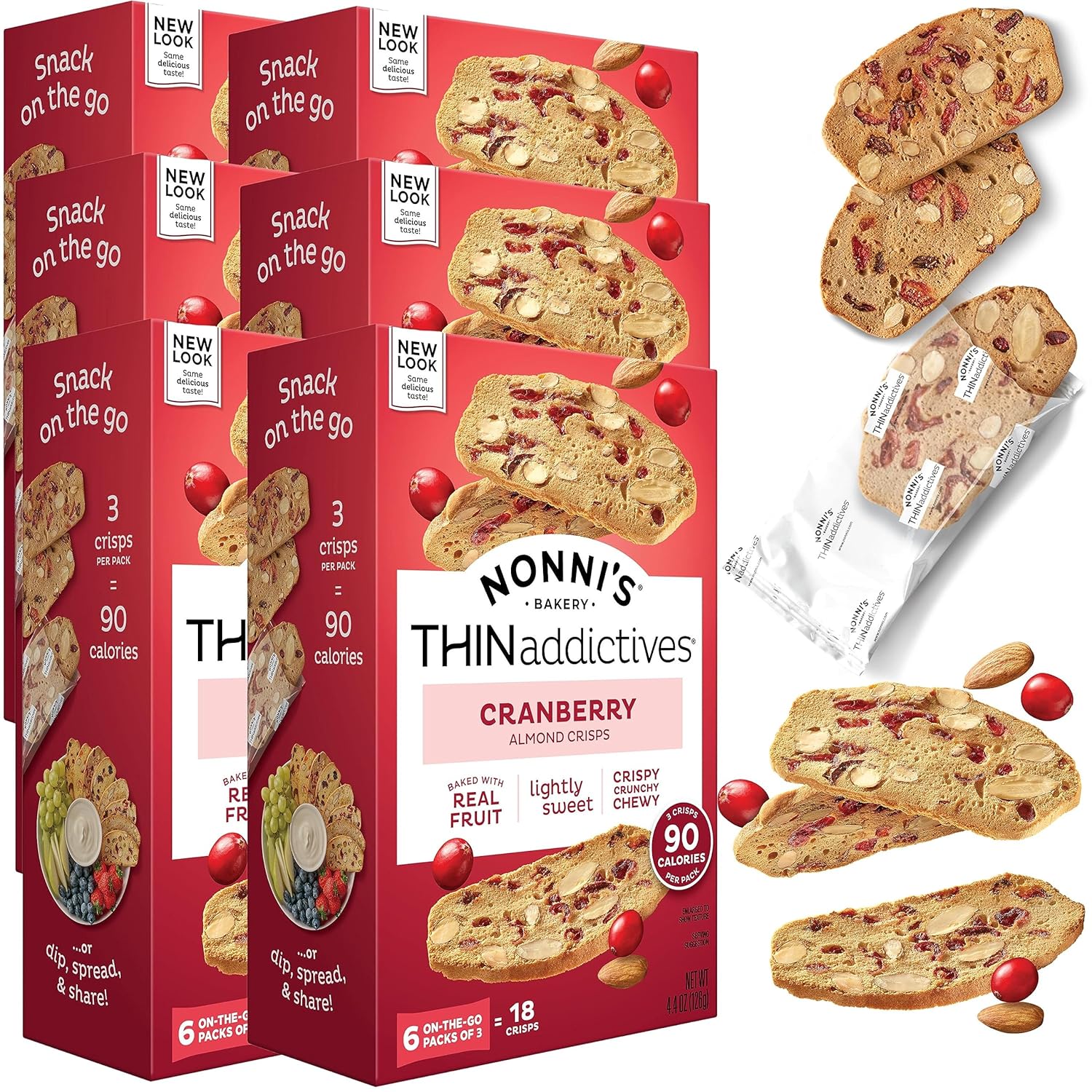 Enjoy the perfect blend of tart cranberries and crunchy almonds in Nonni’s Thin Addictives Cranberry Almond Crisps. These oven-baked, thinly sliced biscotti-style cookies offer a deliciously light and satisfying snack you can feel good about. Great with coffee, tea, or on their own.