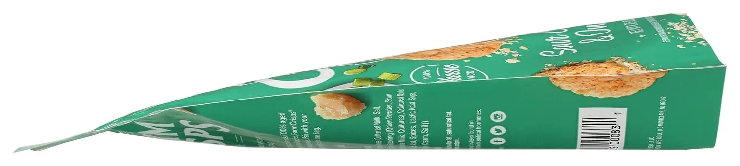 Enjoy a savory, crunchy snack with ParmCrisps Sour Cream & Onion — made entirely from 100% aged Parmesan cheese and oven-baked to perfection. These gluten-free cheese crisps are seasoned with tangy sour cream and sweet onion for a sophisticated, guilt-free treat that’s perfect on its own, on salads, or paired with your favorite dip.