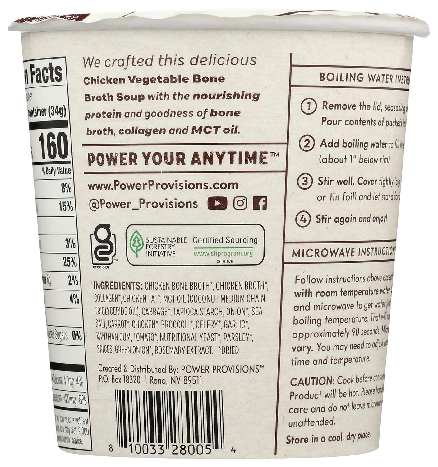 Power Provisions Chicken Vegetable Broth Soup is a protein-packed, keto-friendly instant soup designed for a nutritious and comforting meal. Made with collagen and real ingredients, it’s an easy and delicious way to enjoy a warm, nourishing broth anytime.