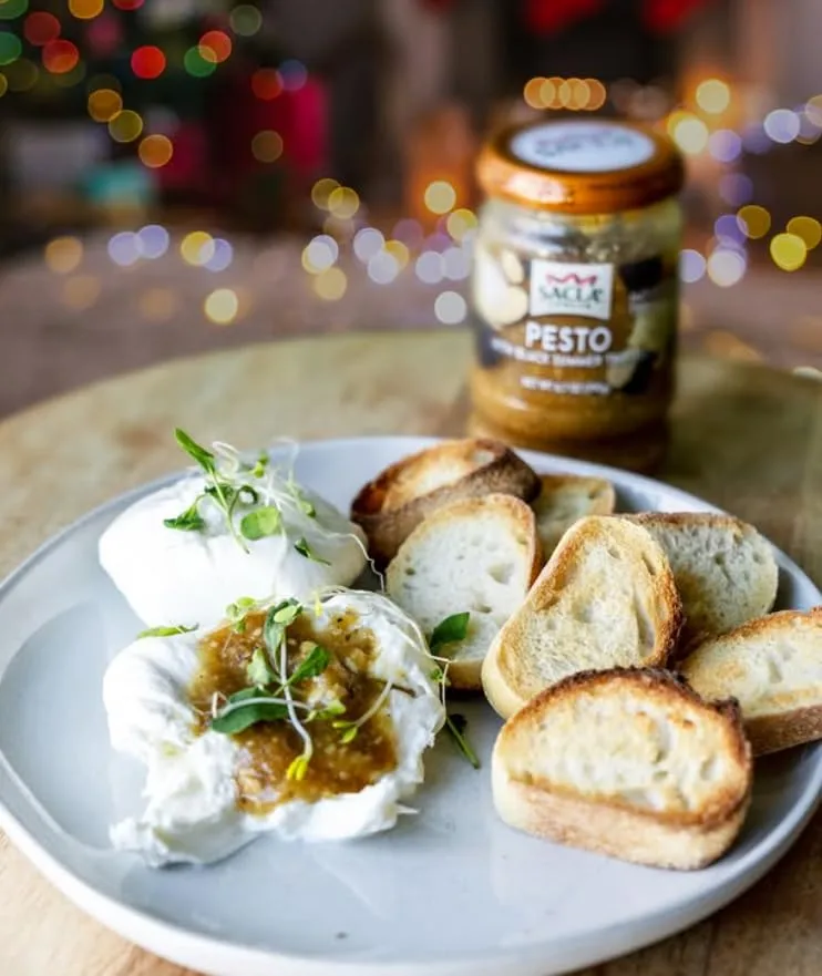 SACLA Pesto with Black Summer Truffle & Vegetarian Cheese (6.7 Oz) combines rich Italian basil pesto with the earthy aroma of black summer truffles for a gourmet twist. Perfect for pasta, crostini, or as a luxurious sauce or spread.