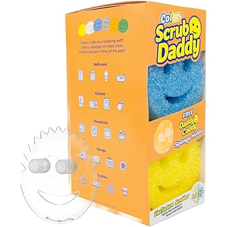 Brighten up your cleaning routine with Scrub Daddy’s colorful sponge set! This multi-pack includes a vibrant assortment of Scrub Daddy smiley face sponges designed to make cleaning fun, effective, and scratch-free across all surfaces.