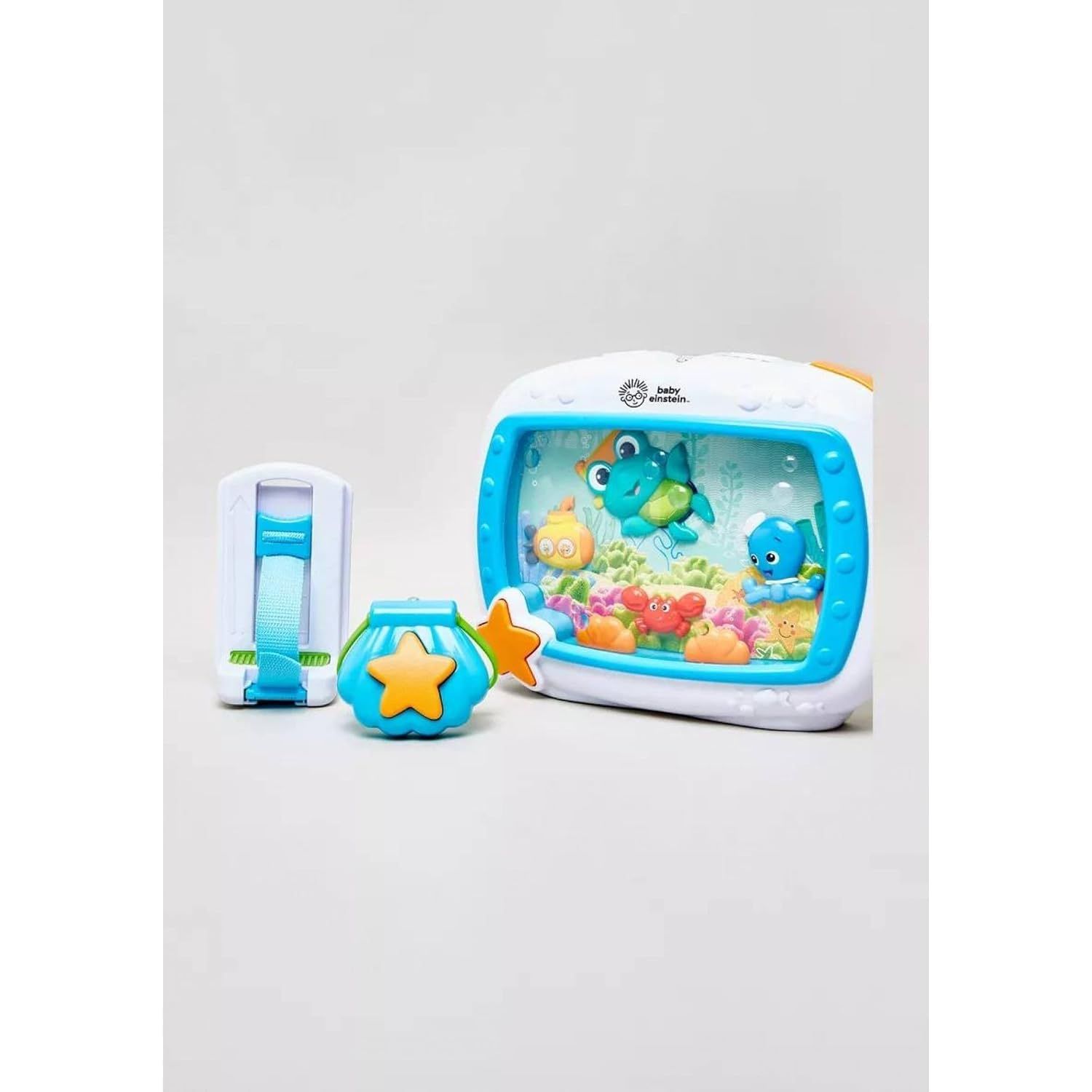 - Captivating Ocean Theme: Features mesmerizing underwater scenes with soothing lights, gentle motion, and aquatic friends to calm and delight your baby.