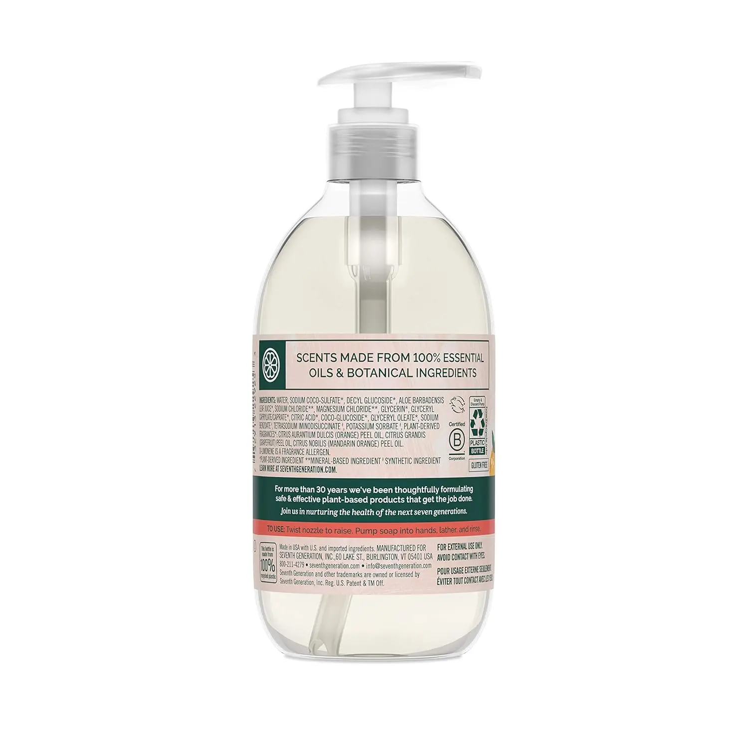 Seventh Generation Liquid Hand Wash Mandarin Orange & Grapefruit 12 oz