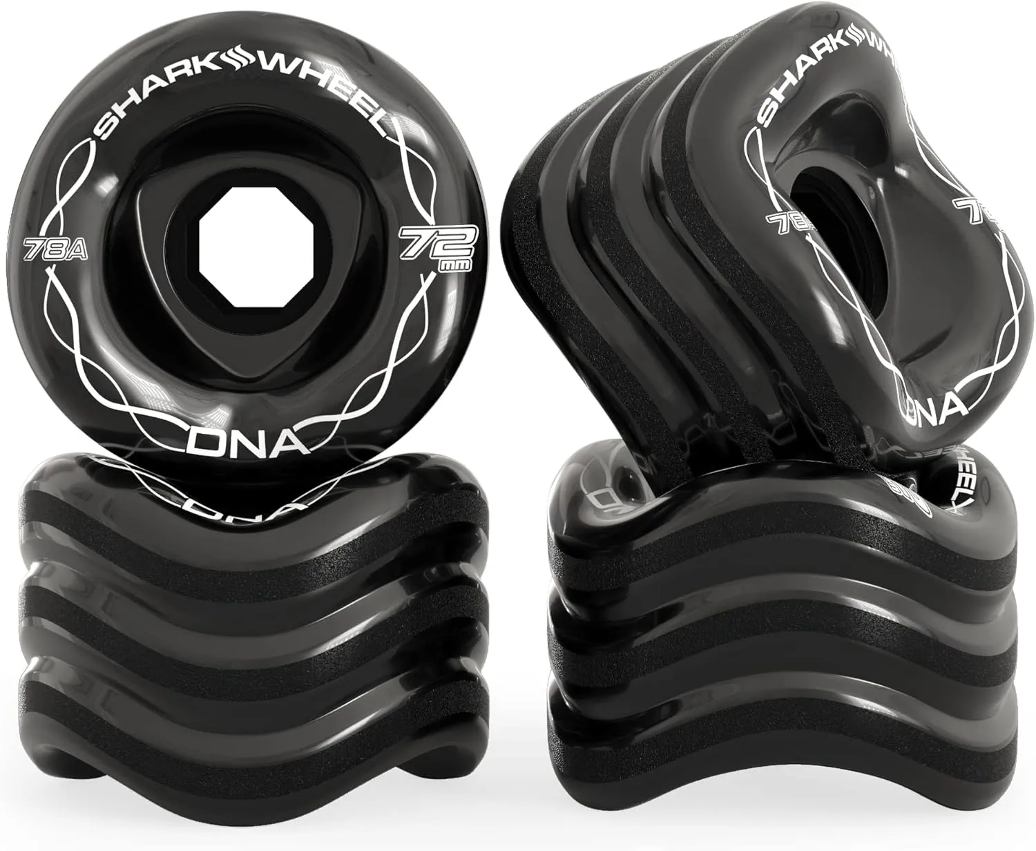 Cruise confidently with these 72 mm black DNA-series wheels by Shark Wheel. Designed for longboards, cruisers or surf-style setups, they use the brand’s signature sine-wave geometry to deliver smooth roll, better handling on imperfect surfaces, and a sleek all-black aesthetic.