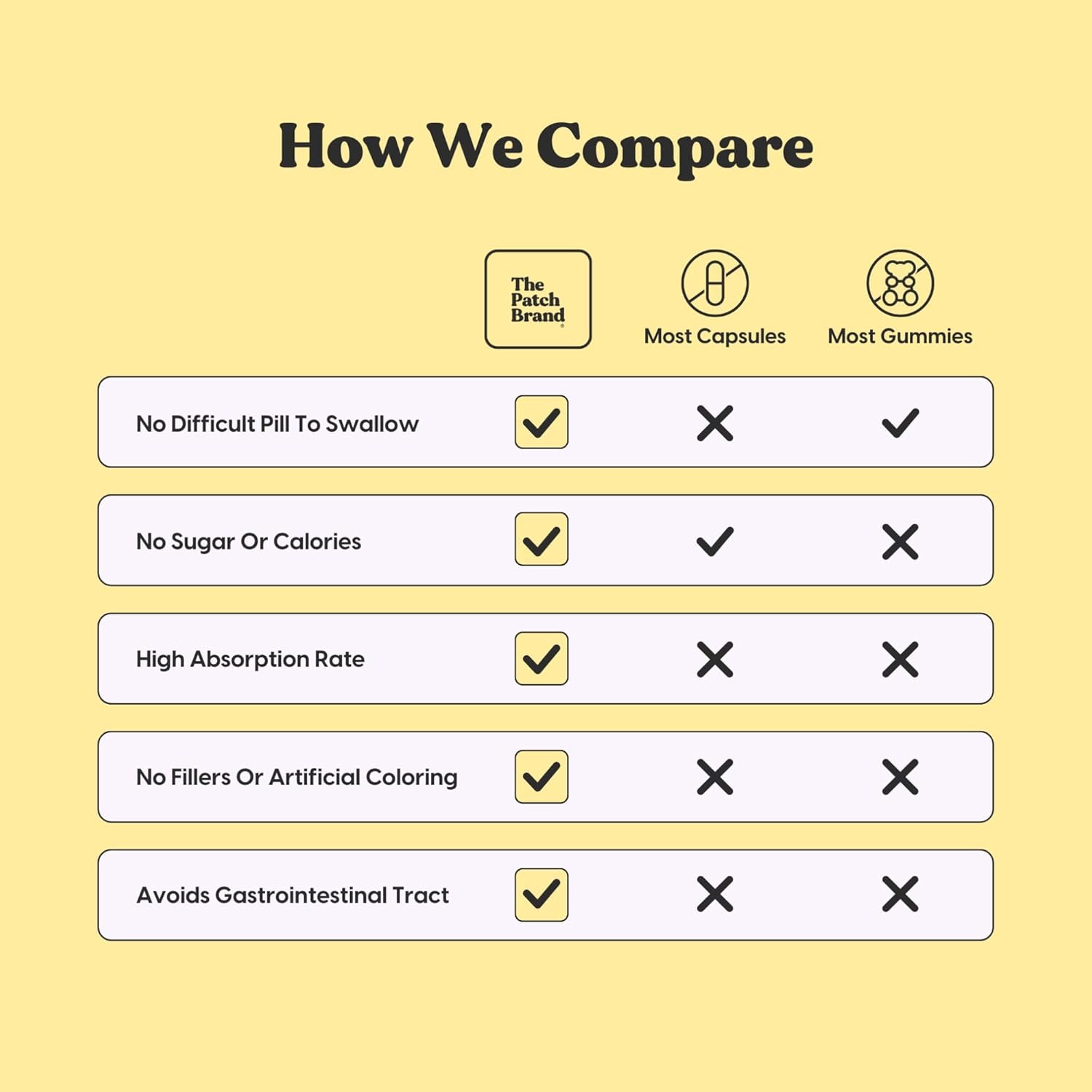 The Patch Brand Energy Patch (15 Ct) delivers a steady boost of energy and focus through natural ingredients like caffeine, Vitamin B3, and Vitamin B5. These easy-to-use patches provide long-lasting support without the crash of energy drinks or coffee.