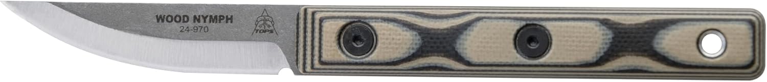 The TOPS Knives Wood Nymph Fixed Blade Knife is a compact yet capable cutting tool designed for bushcrafters, hikers, and outdoor enthusiasts who appreciate lightweight performance. Featuring a durable full-tang design, this knife offers excellent control for carving, feathering, and detailed field tasks. Its Tan/Black handle scales provide a secure, ergonomic grip, while the balanced blade shape makes it ideal for both precision work and everyday outdoor carry. Tough, reliable, and easy to pack, the Wood Nymph is a versatile companion for any wilderness adventure.