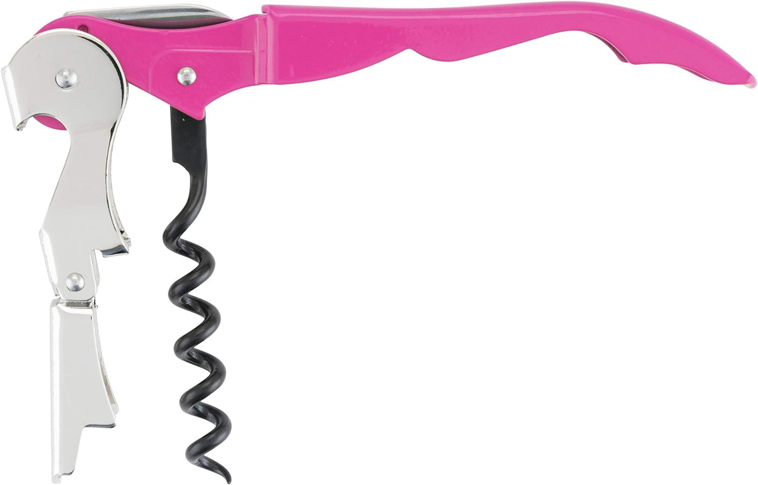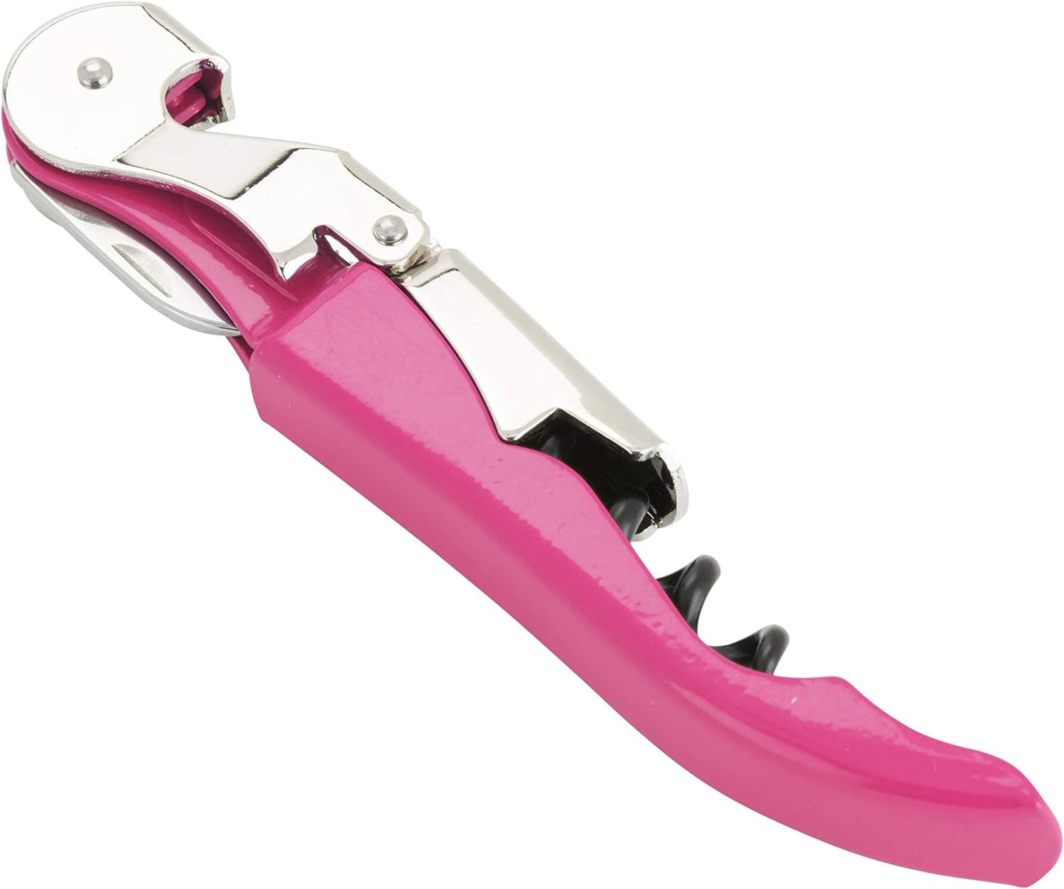 The Truetap™ Double-Hinged Corkscrew combines form and function with a sleek design in a bright pink finish. Made from durable stainless steel, it features a bottle opener, serrated foil cutter, and a non-stick 5-turn worm for easy use. Perfect for wine lovers or as a thoughtful gift.