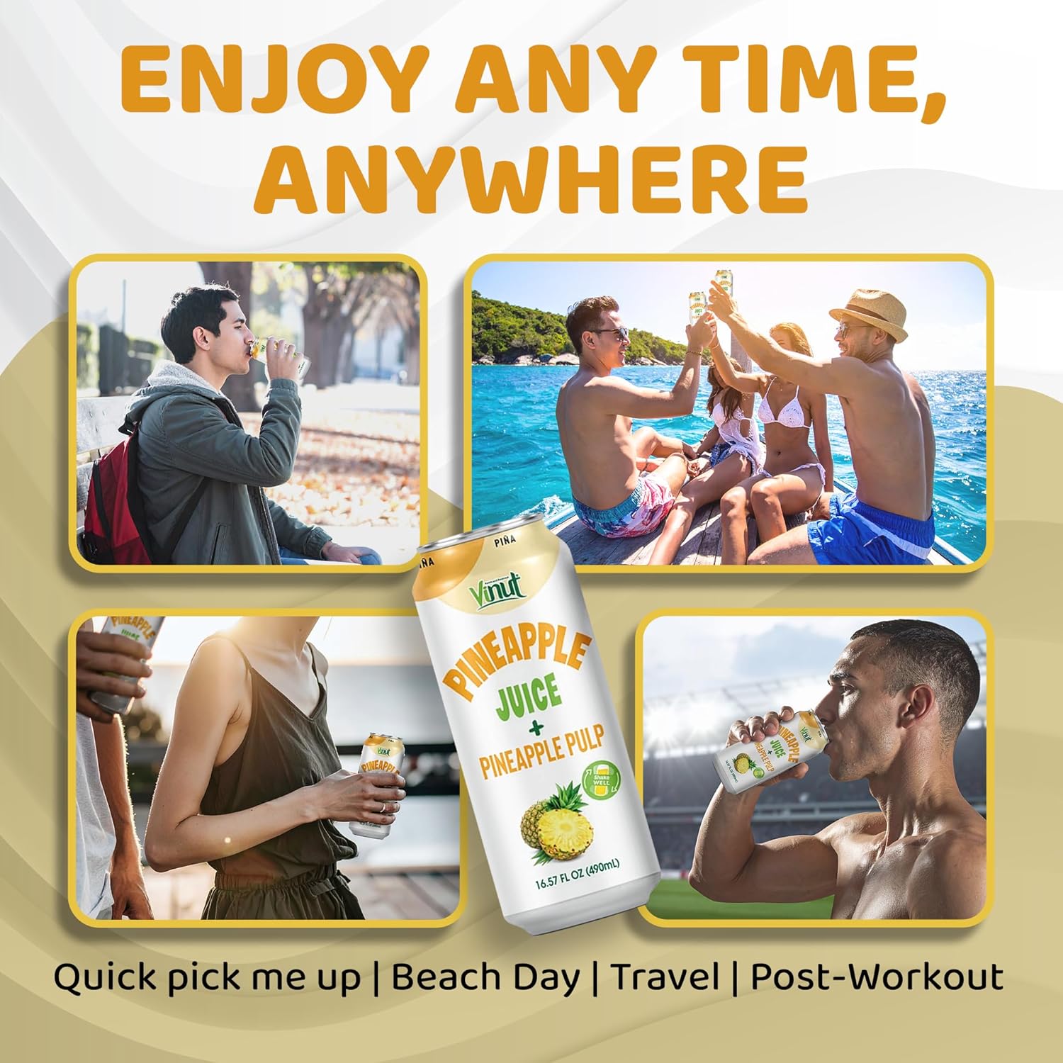 • 100% Fruit Juice with Pulp – Crafted from real pineapple for authentic taste.