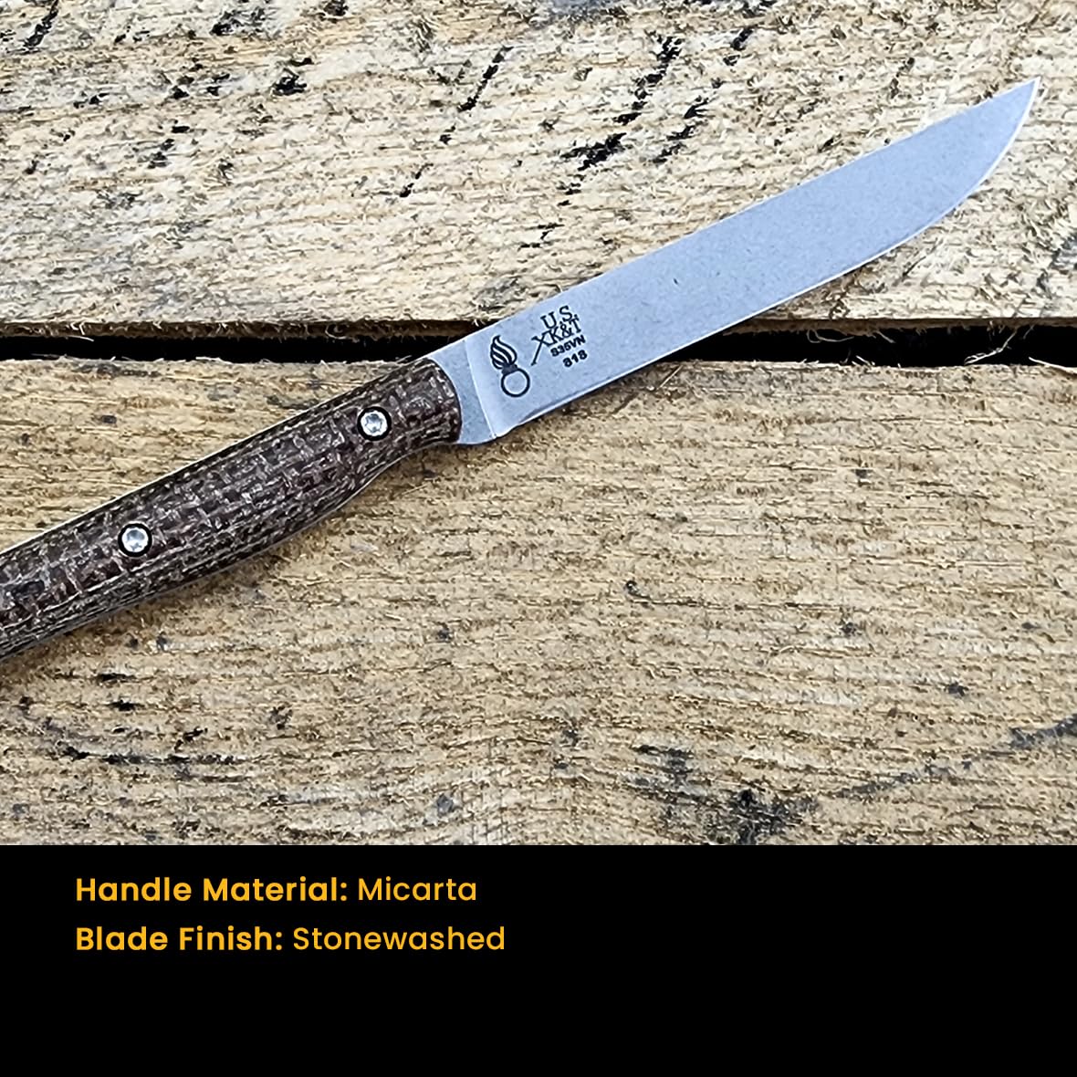 - Natural Burlap Micarta Handle: Comfortable, textured grip with classic bushcraft aesthetics.