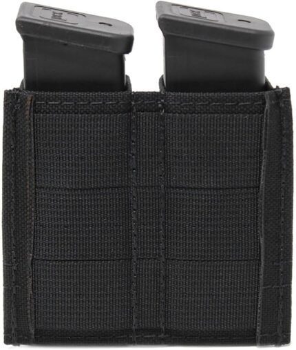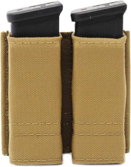 The Esstac Double Pistol GAP KYWI Pouch is a rugged, high-speed magazine pouch designed for secure retention and rapid mag