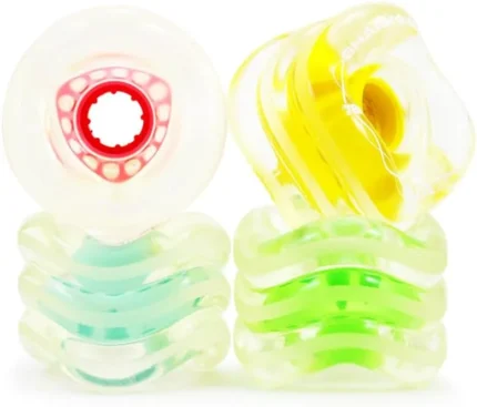 Experience a standout ride with the clear-body, multi-color hub edition of Shark Wheel’s 72 mm DNA formula cruising wheels. Engineered