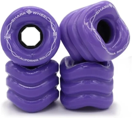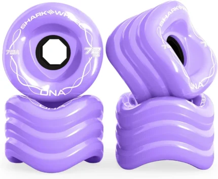 These Shark Wheel 72 mm purple cruising wheels feature an innovative sine-wave design that delivers smooth, fast rides over rough