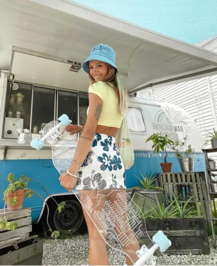These 60 mm cruising wheels from Shark Wheel in the “Clear with Blue Hub” finish combine vibrant style with high-performance