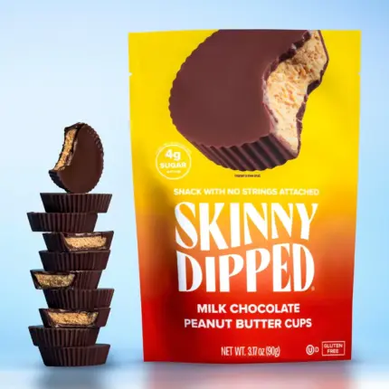 Indulge in a lighter take on a classic favorite with SkinnyDipped Milk Chocolate Peanut Butter Cups. Each cup packs 30%