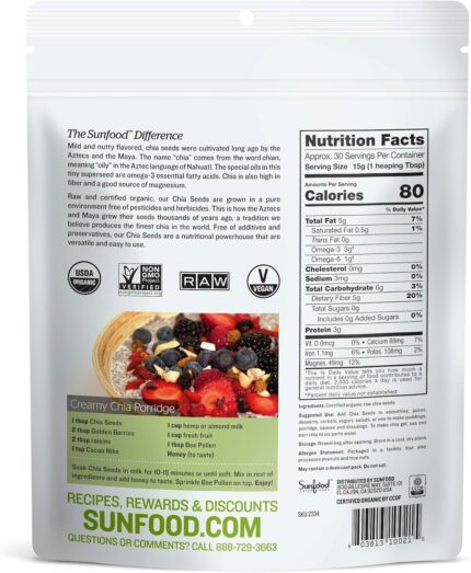 Sunfood Superfoods Raw Organic Chia Seeds (1 lb) are tiny, nutrient-dense seeds that are rich in omega-3 fatty acids, fiber,